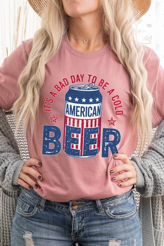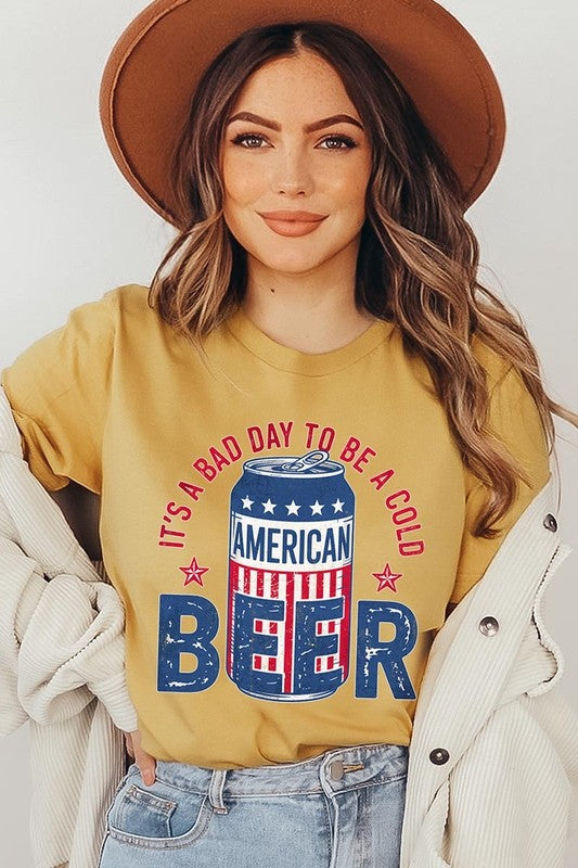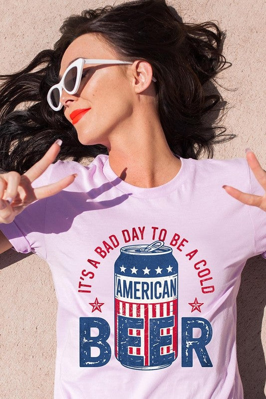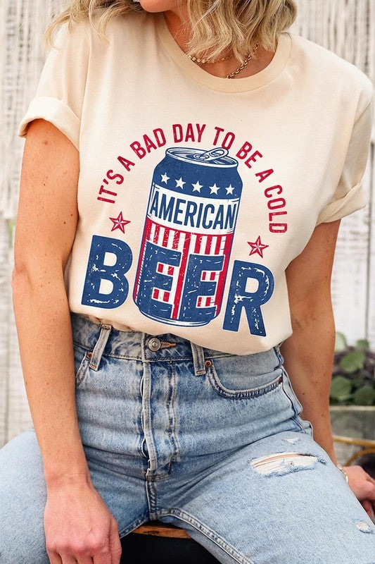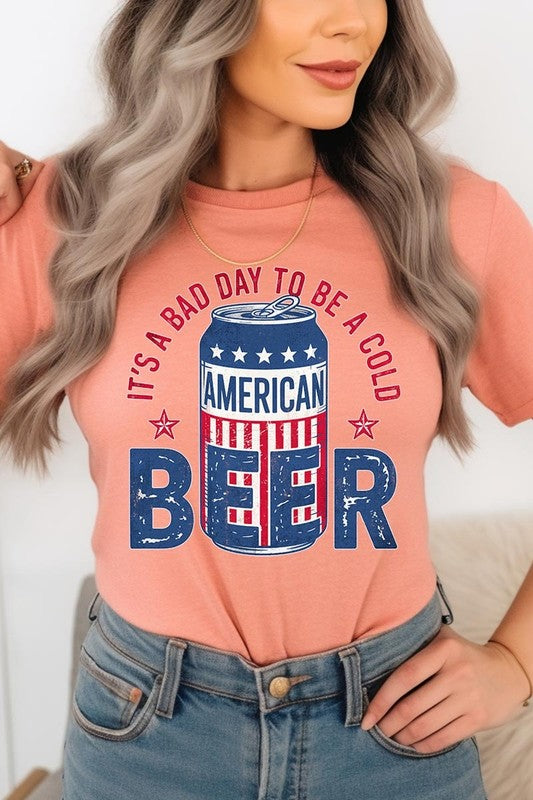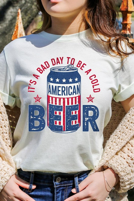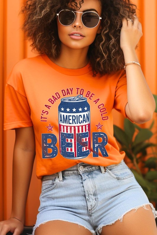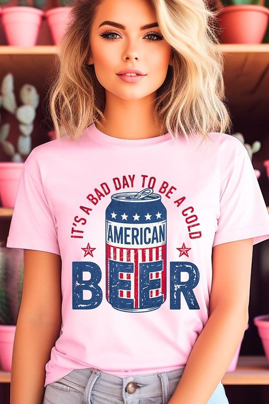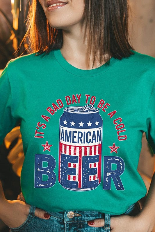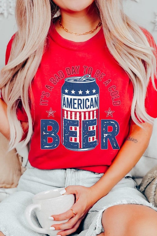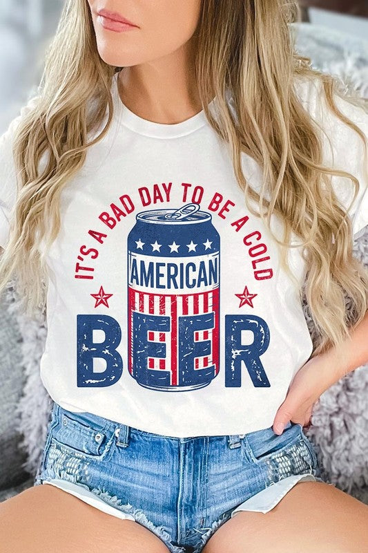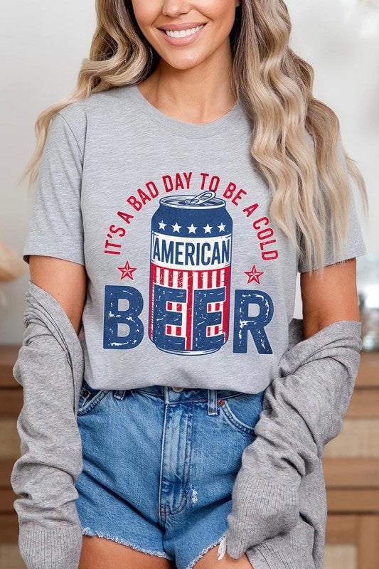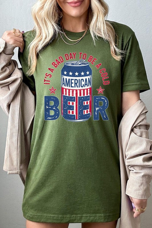 t's A Bad Day To Be A Cold Beer, Funny 4th of July, American Flag, Patriotic Drinking, Independence Day Graphic Plus Size Tee.