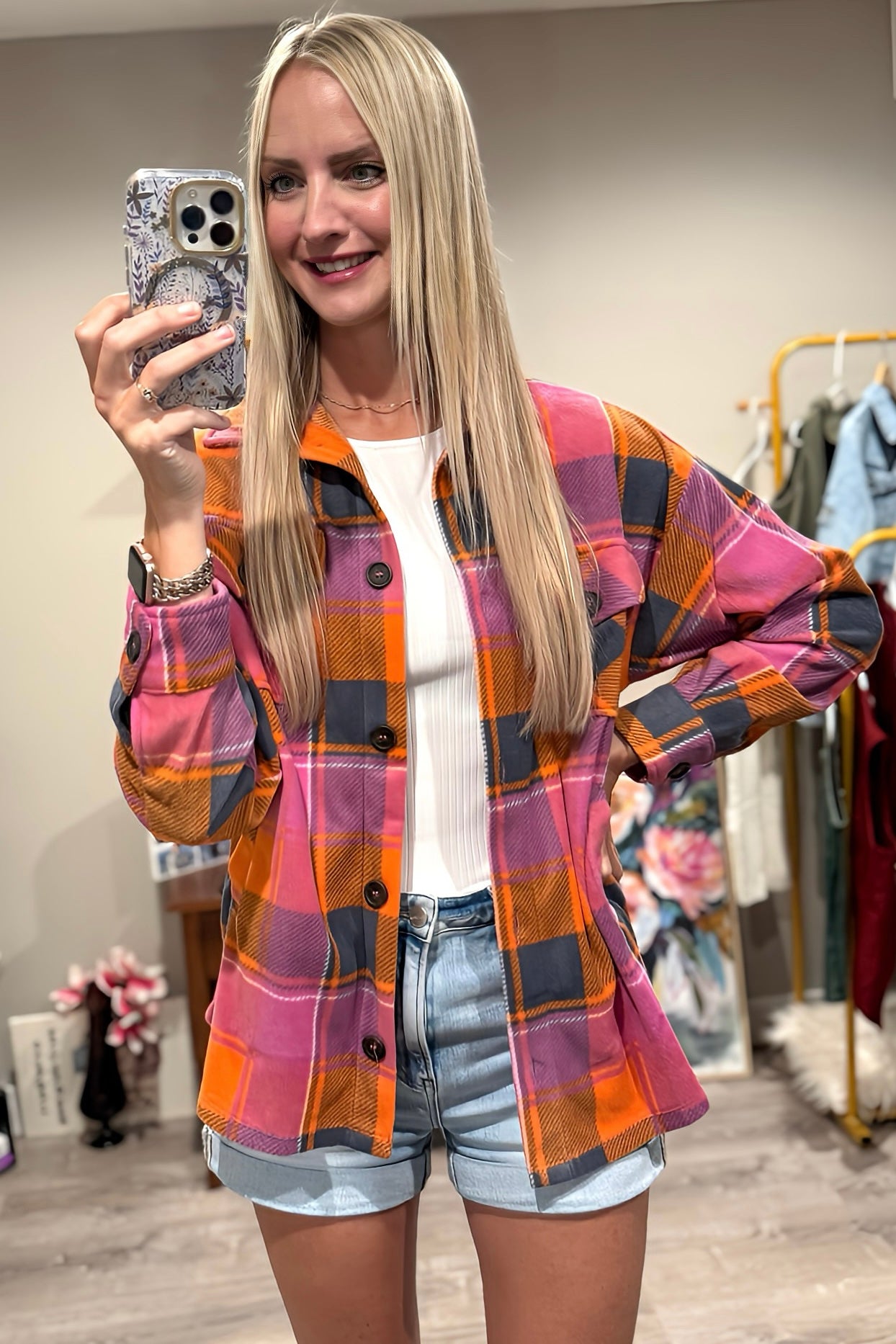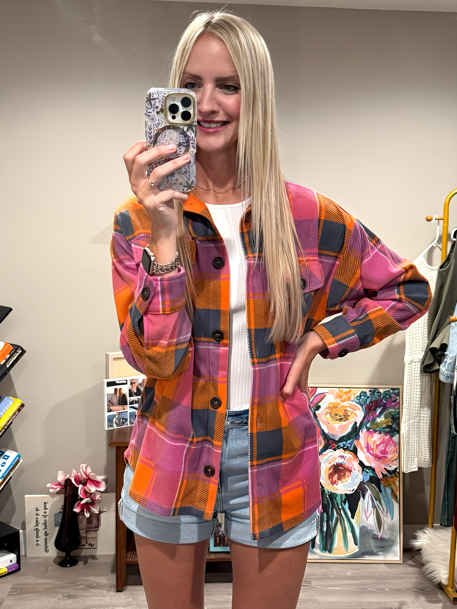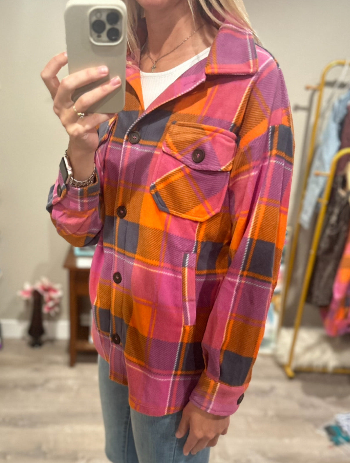 Stay cozy and stylish with our Polar Fleece Plaid Shacket featuring a handy front button closure and buttoned cuffs. This versatile piece measures approximately 28.5" in length (front) and 43" around the bust, based on a size small. Please note that colors may differ slightly due to monitor settings. Perfect for layering, it combines warmth and functionality effortlessly.