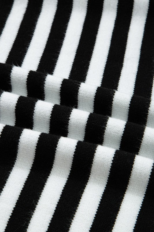 Stripe Colorblock Sleeve Ribbed Trim Sweater