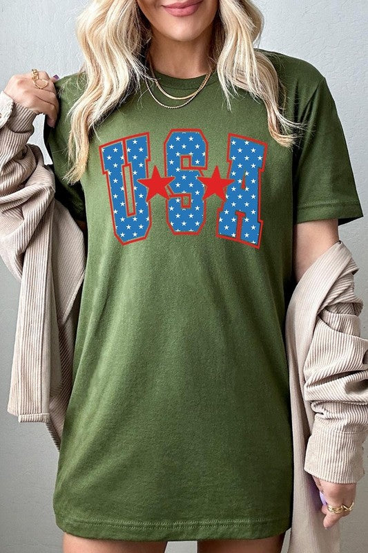 Patriotic USA, 4th of July, Independence Day, America Graphic Plus Size Tee.